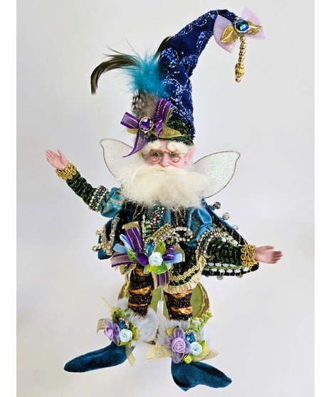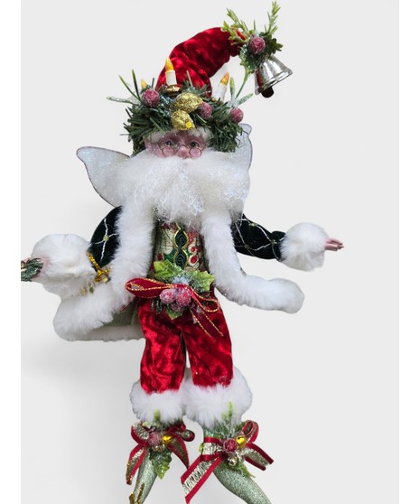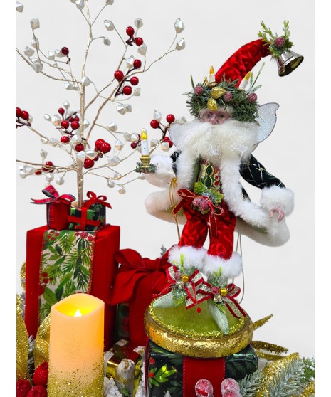 Christmas Elf Sm 9". Velvet and bejeweled Fellow with a ruby and glitter. Includes a winter glitter Stage