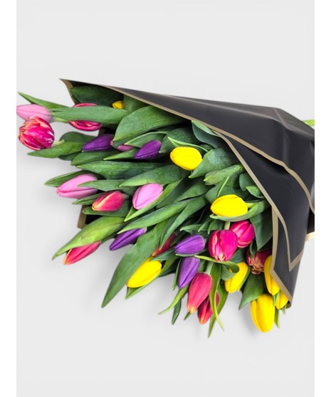 Local fresh tulips from local Fields. They will receive a bunch of assorted wrapped tulips, handpicked for them.