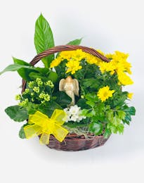 Tied together with a graceful white bow, this garden is a tactile expression of support, love, and peaceful memories. While the plants and the angel may vary based on availability, the message remains unwavering—a tribute to lasting memories and a promise of tranquility. With an approximate size of 12 inches wide by 12 inches high for the premium version, this memory garden is a fitting tribute to a place in one's home as a reminder of loved ones and the peace they brought into our lives.