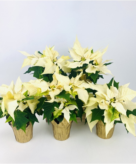 A holiday tradition! Our poinsettias are set in a classic red or gold pot cover. Easy to grow and will look great for months even after the holidays.